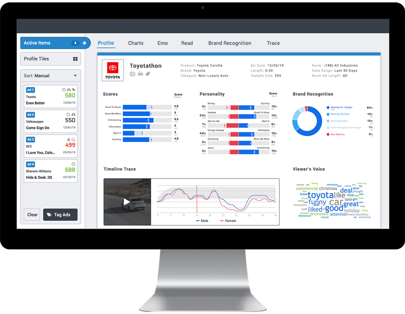 Give brands the ability to measure the impact of their video advertising on a platform with over 100,000 ads from 4,300 brands across 118 categories resulting in over 50 million responses and 30 million verbatims.