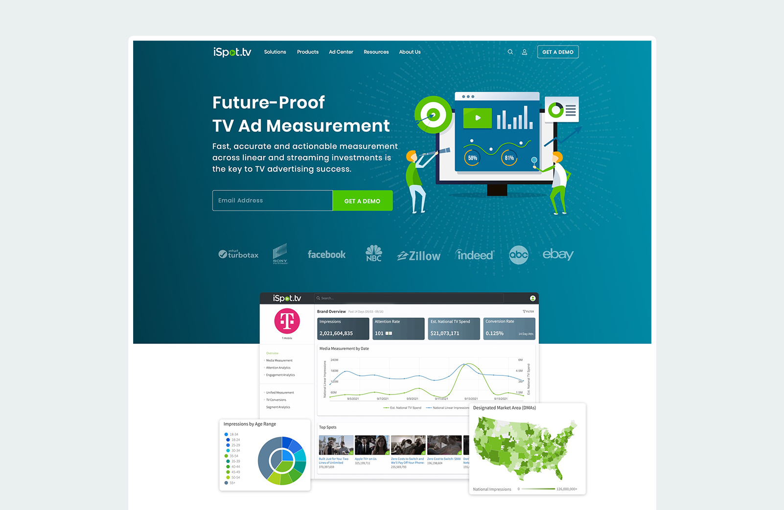 HERO REDESIGN In 2021, iSpot.tv also underwent a branding guideline overhaul and with that came an opportunity to update the public facing website. As a design team we worked collectively with the VP of Product in order to come up with a hero image that we were all proud of. This was one of my submissions and even though it was not the one we decided to go with it is still my favorite.