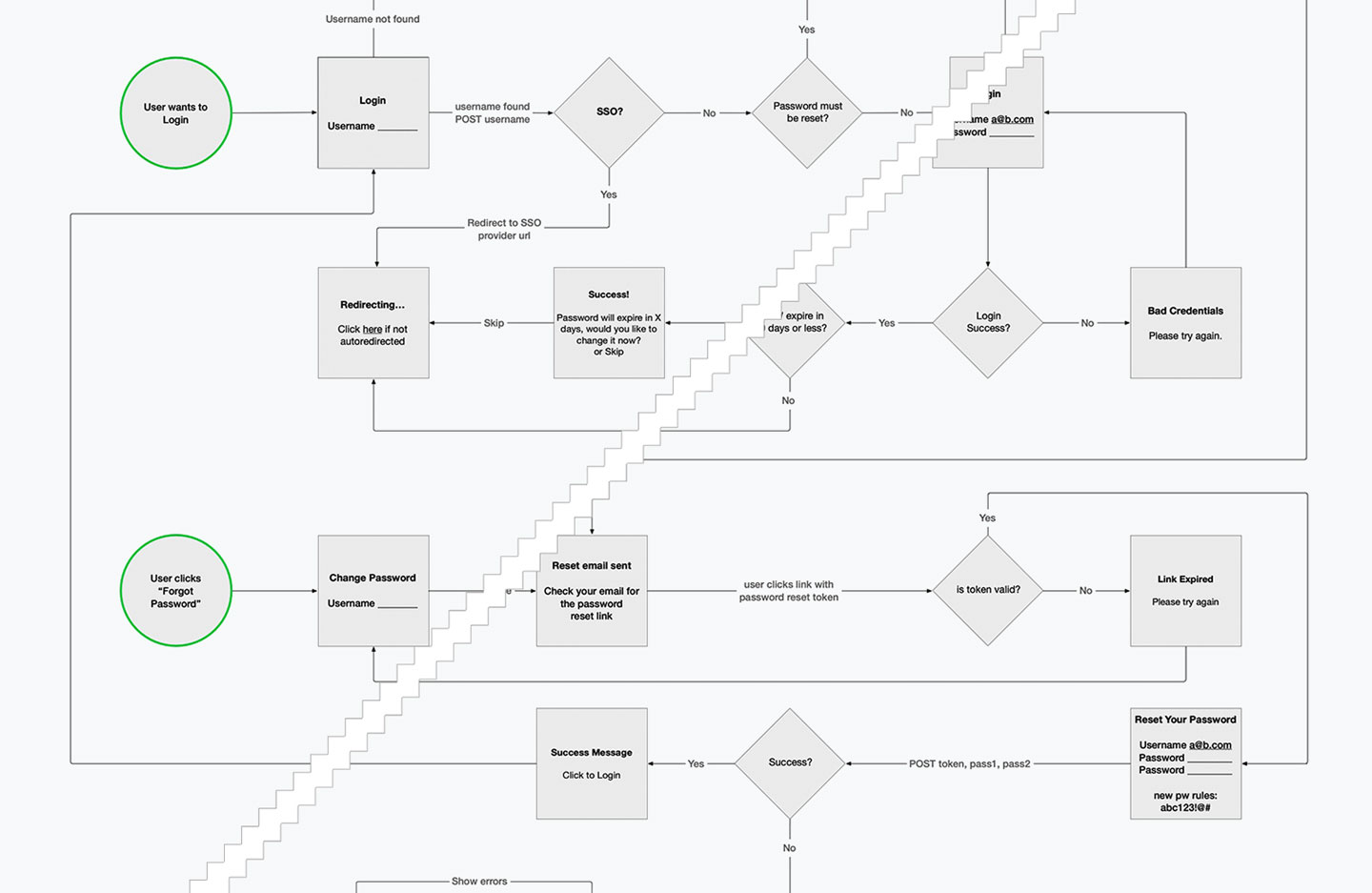 USER FLOW The first step was to work with designers, developers, managers, and other stakeholders from both companies in order to set up a user flow to figure out exactly what each team was building. This helped each team figure out what had to be done and also allowed me to start planning what steps were going to be needed for the user experience.
