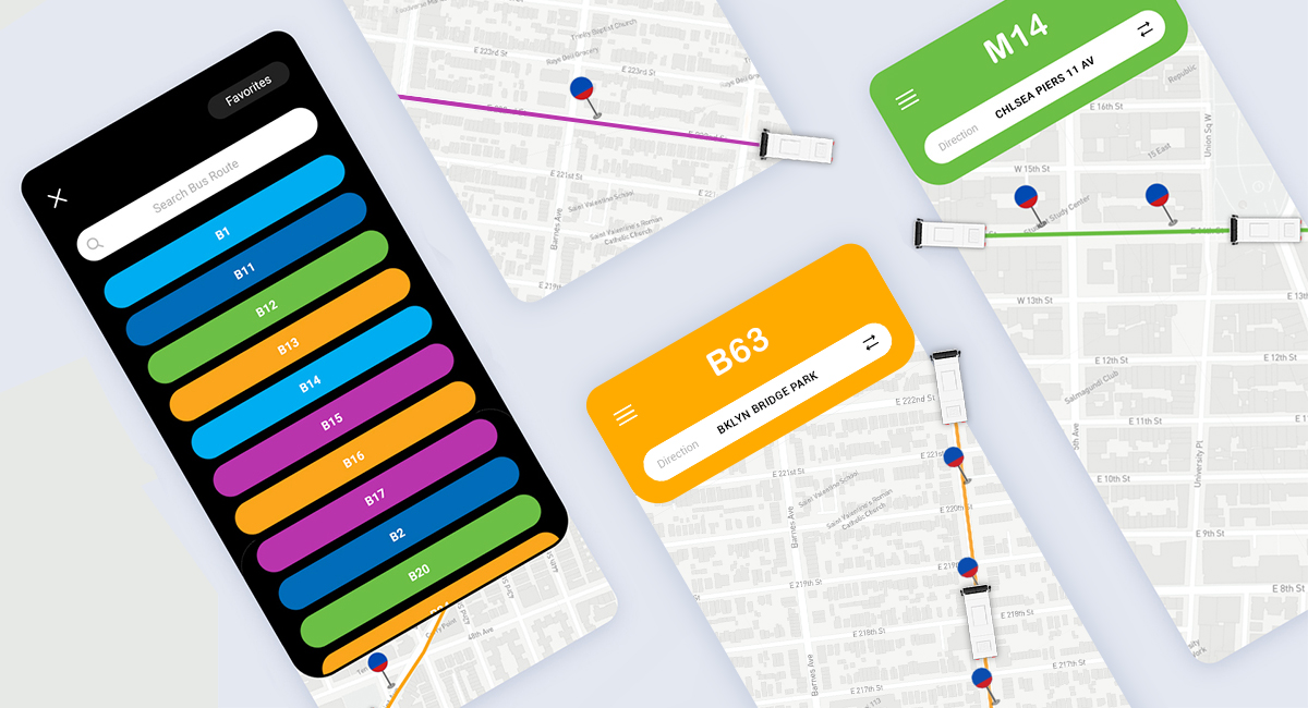 CHALLENGE The objective was simple, the user lands on the application, filters for the specific bus route they need, and sees exactly where the next bus is. Since commuters normally take 1-3 bus routes, we also added a way for them to save certain routes to their 'Favorites' for quick access next time.